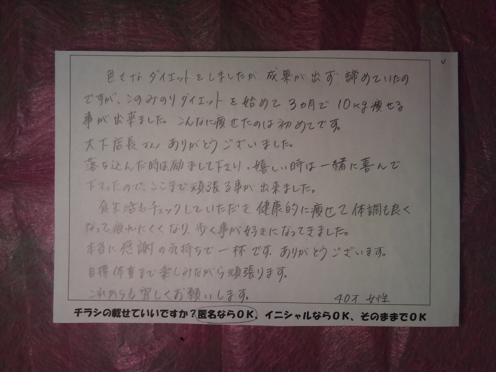 やせたお客さんの声です!